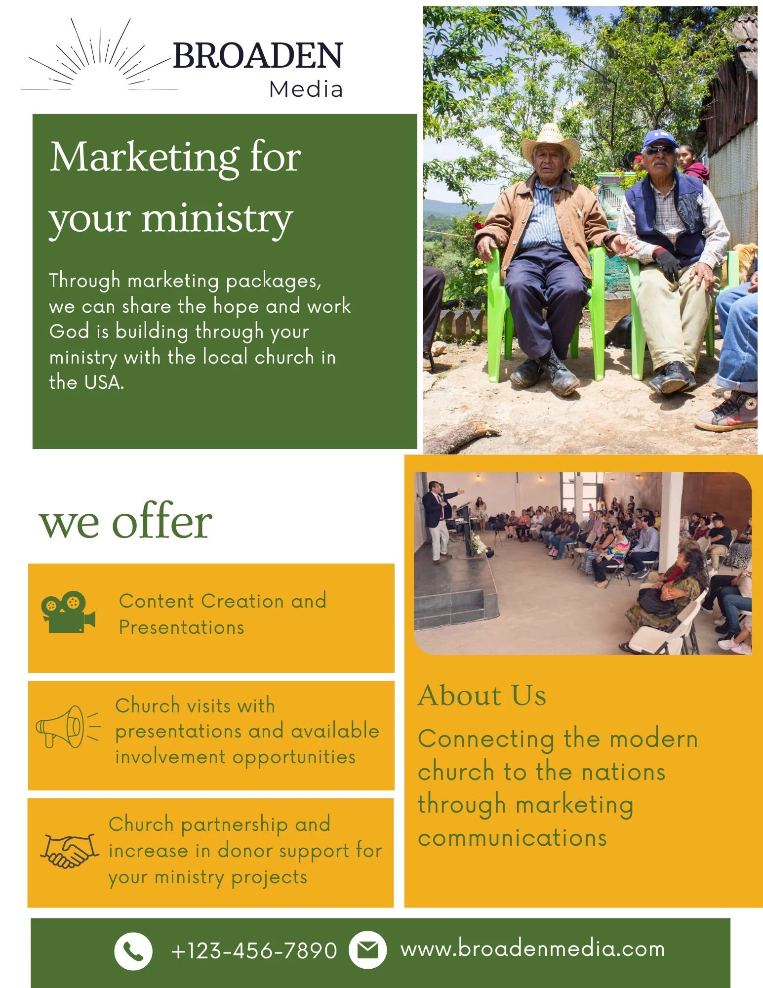 Broaden Media is a Non Profit Concept to connect people to businesses and mission bases overseas who are spreading the Gospel through quality marketing and design.